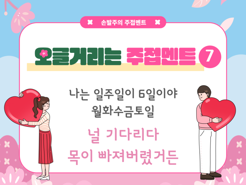 목차 플러팅 의미 플러팅 싱글이에요 정석 플러팅 플러팅 댓글 (선재를 데리러 도망가세요) 플러팅 하는 법 플러팅 의미 특징 댓글 예시 알아보죠 #플러팅 #플러팅 의미 #플러팅 특징 #플러팅 테크닉 #플러팅 #플러팅 장인 #플러팅 댓글 #플러팅 댓글 모음 #플러팅 하는 법 #플러팅 예시 #플러팅 댓글 모음 m.blog.naver.com 플러팅 의미 영어사전에서 플러팅의 의미를 찾아보면 ‘재미삼아 사귀다’라고 되어있습니다. 요즘은 플러팅의 의미가 사전의 의미와 조금 다르게 쓰입니다. 특정 행동을 통해 상대방에게 애정이나 관심을 보일 때 ‘우리는 플러팅하고 있다’고 말합니다. 최근 인기리에 방영 중인 드라마 ‘선재를 데리러 와’에서 변우석(류선재 역)은 ‘존재 자체만으로도 썸’이라 불리는데, 이는 그가 존재 자체만으로도 누군가를 좋아해서 관심을 불러일으킨다는 의미이므로, 썸 댓글의 일종으로 볼 수 있다. 싱글이다 정숙 썸 나솔 20기 싱글이다 20기 영호와 정숙이 화제다. 특히 정숙의 썸 행동은 많은 시청자들에게 화제가 됐다. 정숙은 영호에게 “이제 키스할까?”라며 썸을 타다가 키스 직후 “이미 넌 내 남자야”라고 소리쳤다. 정숙의 썸 댓글과 스킨십은 싱글이다 20기에서 더욱 뜨거운 관심을 모으고 있다. 다음 회가 기대된다. 썸 댓글 예시 너와 나 사이에 벽이 느껴지니? 너는 완벽한가? 너는 혼자인가? 내 약혼녀? 외국에서 왔어? 이런 판타지 렌즈 써? 내 남자친구? 유모차야? 왜 날 이렇게 슬프게 만들어? 돈 없어. 너랑 ‘영원히’ 있을 테니까. 첫째였을 때 내 마음을 사로잡았어? 이 향수 써? 내가 좋아하는 승마 동아리? 아무 말도 못해. 짐 무겁지 않아? 멋지다. 이 오일만 써. Only You(油) 내 일주일은 월, 화, 수, 금, 토, 일. 널 기다리느라 너무 피곤해. 왜 이렇게 피곤해 보여? 머릿속을 계속 맴돌아다니니까? 어두워. 사진은 어디야? 그래야 빛날 거야. 아이돌 플러팅 댓글로 자주 쓰이는 예시를 모은 것입니다. 실제로 들으면 부끄럽지만 아주 기분 좋을 겁니다. 상황에 맞는 플러팅 댓글을 사용하면 상대방과 더욱 가까운 관계를 이어갈 수 있을 겁니다. 플러팅하는 법 눈을 마주친 후 미소 짓기눈을 마주친 후 짧게 인사하기공통점 찾기손편지 쓰기 1. 눈을 마주친 후 미소 짓기가장 기본적인 플러팅 방법은 ‘눈을 마주치기’입니다.가장 많이 쓰이는 플러팅 액션은 눈을 마주치고 미소 짓는 것입니다.두 사람 모두 서로를 좋아한다고 가정하고 눈으로 미소 짓고 희미하게 미소를 지으면 호감도가 자연스럽게 높아집니다.너무 많이 웃거나 눈을 크게 뜨고 눈을 마주치지 않도록 주의하세요.반대 효과가 나타날 수 있으니까요!2. 눈을 마주친 후 짧게 인사하기눈을 마주친 후 짧게 인사하기이 방법은 플러팅에서 자주 쓰이는 방법입니다.자주 눈을 마주치고 그때마다 가볍게 고개를 끄덕이거나 손을 흔들면 상대방도 당신이 자신을 좋아한다는 것을 알아차릴 것입니다.밝은 이미지로 밝게 미소 짓고, 좋아하는 사람과 눈을 마주치고 짧게 인사하세요.3. 공통점 찾기좋아하는 사람을 사로잡는 가장 쉬운 방법 중 하나는 ‘공통점 찾기’입니다. 상대방의 취미와 취향을 미리 알아내고 공통점을 찾은 뒤 이야기를 나누면 훨씬 쉽게 플리팅을 할 수 있을 겁니다. 4. 손편지 쓰기 위의 세 가지 단계를 거쳐 상대방에 대한 호감이 어느 정도 생겼고, 더 나아가고 싶다면 제가 개인적으로 추천하고 싶은 플리팅 방법 중 하나가 바로 ‘손편지 쓰기’입니다. 진심이 담긴 손편지를 상대방에게 전달하면 인상이 두 배가 될 것 같습니다. 그 외에도 플리팅의 예로는 반쯤은 존중하는 말, 가벼운 칭찬, 연락을 주고받는 것 등이 있습니다. 서로가 호감을 느낀다는 전제 하에 위의 플리팅 기법이 필수적이라는 사실을 잊지 마세요. 플리팅의 의미, 솜씨 등이 궁금하다면 아래 링크를 참고해주세요. 또한, 맨 아래에 아이스브레이킹이나 가벼운 농담으로 플리팅하기 좋은 넌센스 퀴즈도 첨부하겠습니다. 또 다른 재미있는 주제로 돌아오겠습니다. 광고 뒤에 계속됩니다. 다음 주제 작성자 취소 플로팅 의미 댓글 댓글을 만드는 방법 예시 재생 1 좋아요 0 좋아요 공유 0:00:00 재생 음소거 00:00 00:24 실시간 설정 전체 화면 해상도 자동 480p 자막 비활성화 재생 속도 1.0x(기본값) 해상도 자동(480p) 1080p HD 720p HD 480p 270p 144p 자막 설정 비활성화 옵션 글꼴 크기 배경색 재생 속도 0.5x 1.0x(기본값) 1.5x 2.0x 알 수 없는 오류가 발생했습니다. 도움말 음소거되었습니다. 도움말 라이선스 이 영상은 고화질 재생을 지원합니다. 설정에서 해상도를 변경해보세요. 더 알아보기 0:00:00 접기/펼치기 플러팅 의미, 댓글 쓰는 법, 예시 #플러팅 의미 #플러팅 #순수한 플러팅 #플러팅 댓글 #플러팅 하는 법 #플러팅 예시 #플러팅 댓글 #플러팅 댓글 예시 #아이돌 댓글 #플러팅 댓글 최신 플러팅 의미, 댓글 예시, 기법에 대해 알아보세요 요즘 플러팅 의미, 댓글 예시, 플러팅 하는 법, 플러팅 장인 기법에 대해 궁금해하시는 분들이 많으실 텐데요… blog.naver.com 플러팅 농담, 아이스브레이킹 의미, 아이스브레이킹 의미 질문, 재밌는 넌센스 퀴즈 모음 아이스브